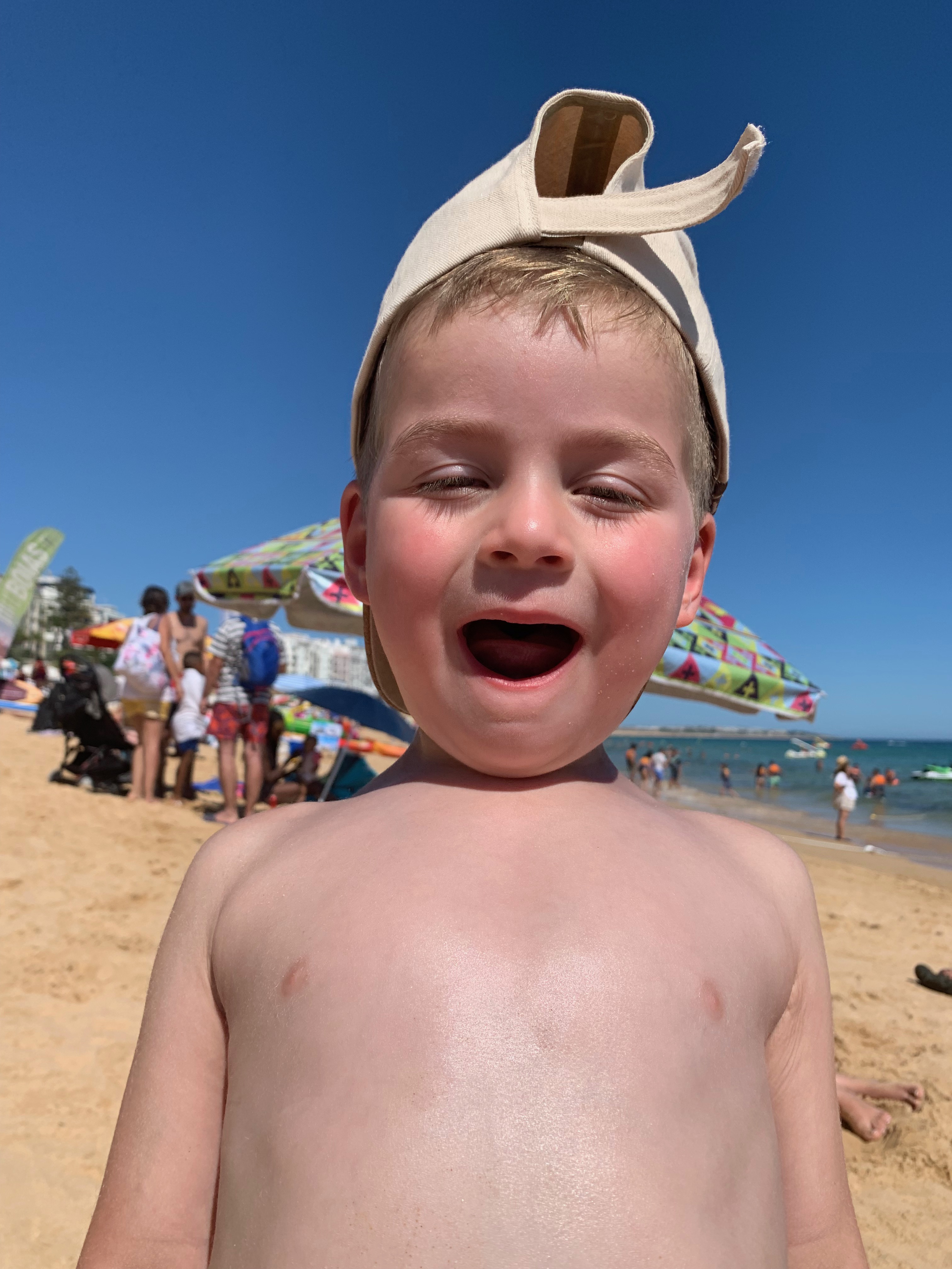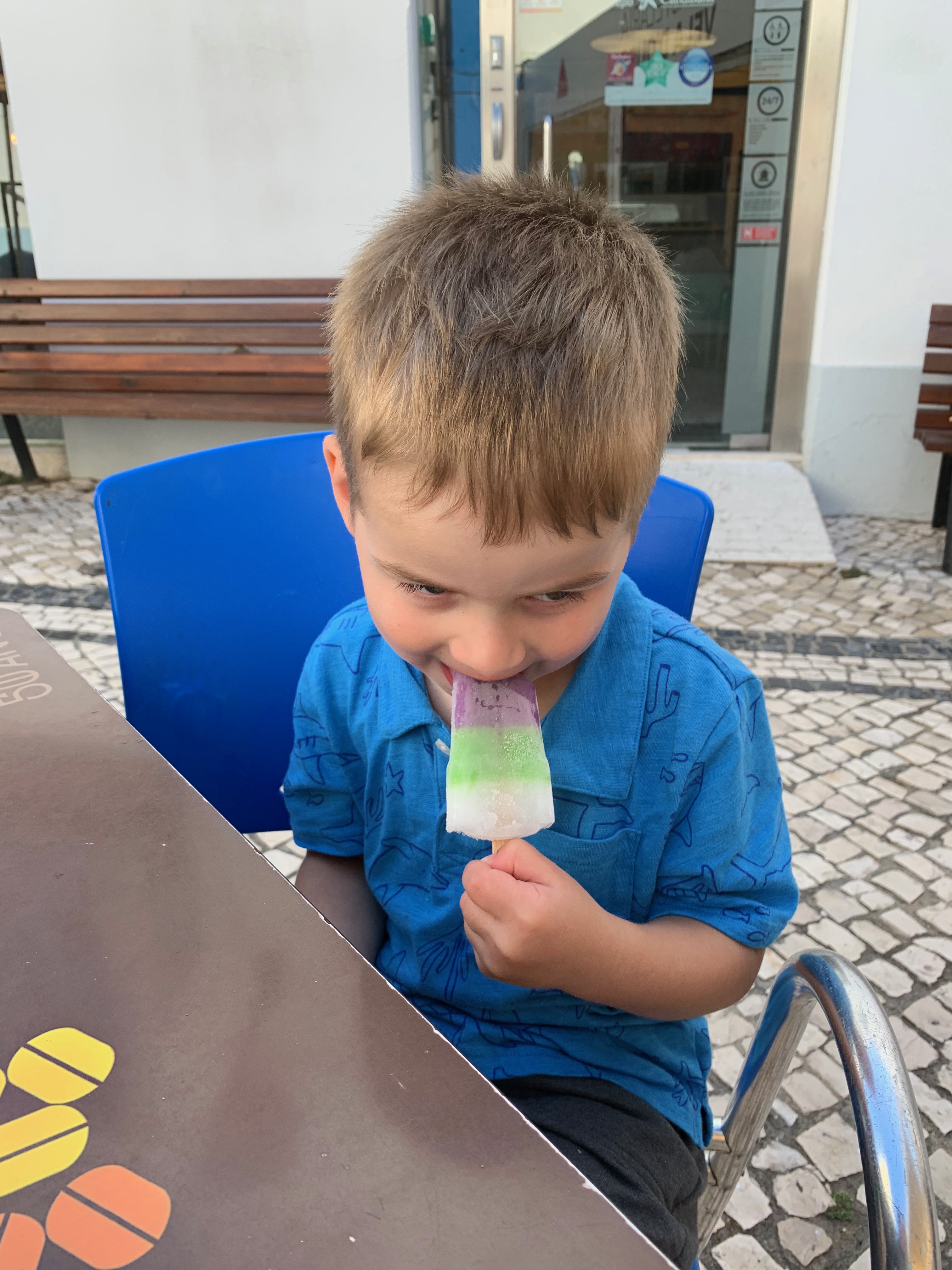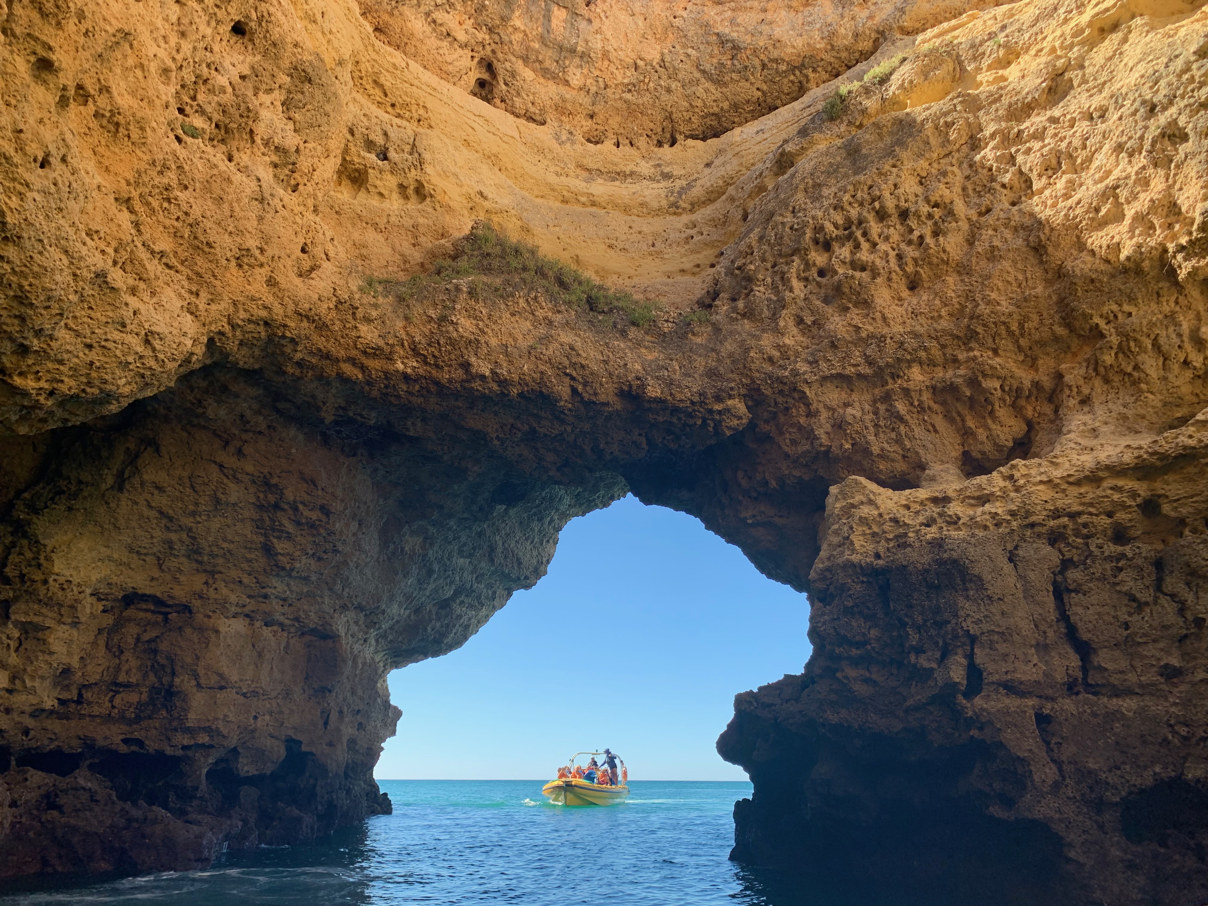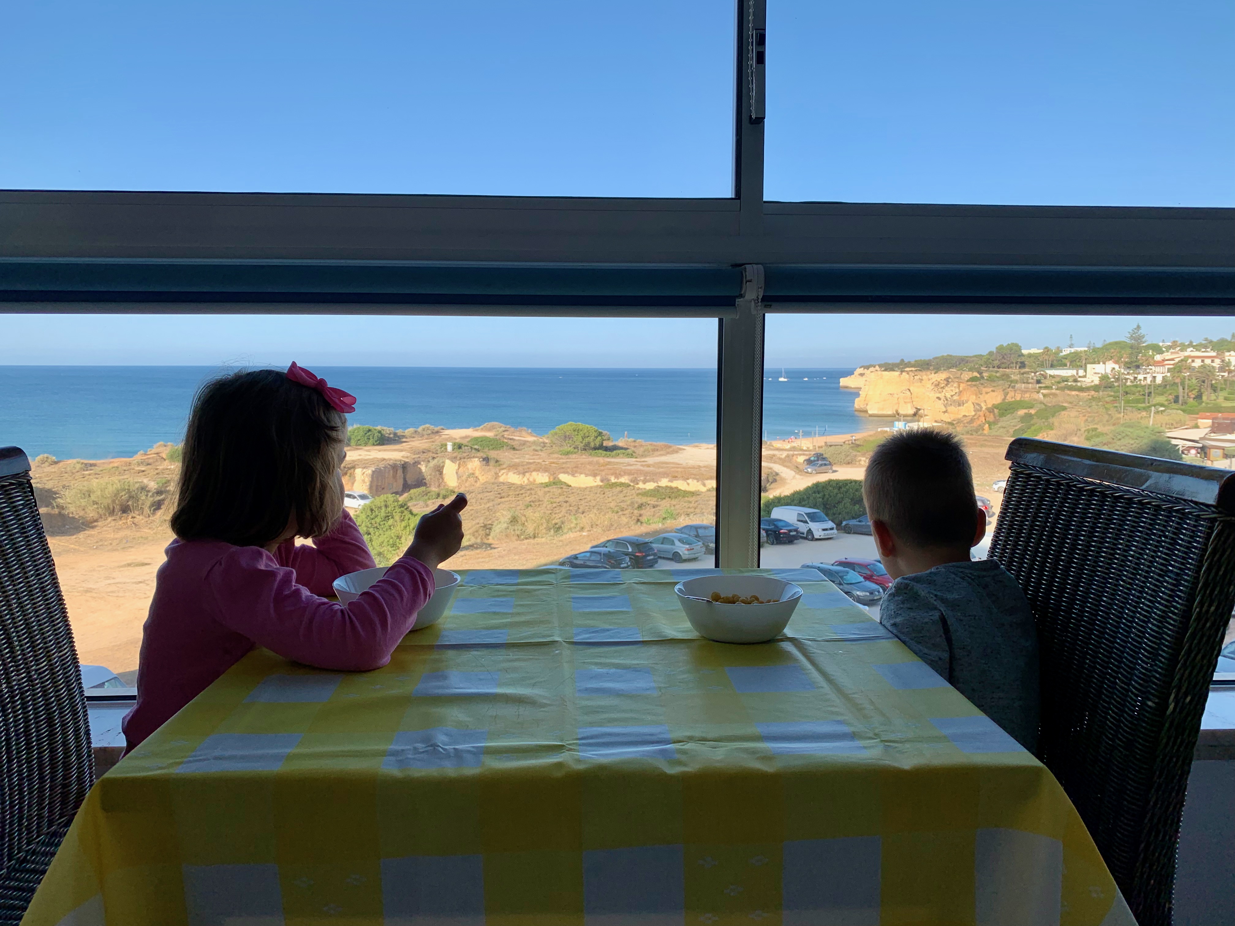 Day 3. Up at sunrise (me). Up at 10 minutes later (kids). So, no Golden Hour today. We went for a walk around Armaçao de Pêra, got coffee and croissants, went down to the beach. They had a playground right by the beach! Then, around 10 AM, we got on a speed boat and did Benagil caves tour, only L and I so it was a mommy and me date. The caves were incredibly beautiful and the captain of the boat could squeeze into very tight openings in rock formations. I actually got a bit of anxiety. T and R stayed home, because the minimum age for this tour was five years old.