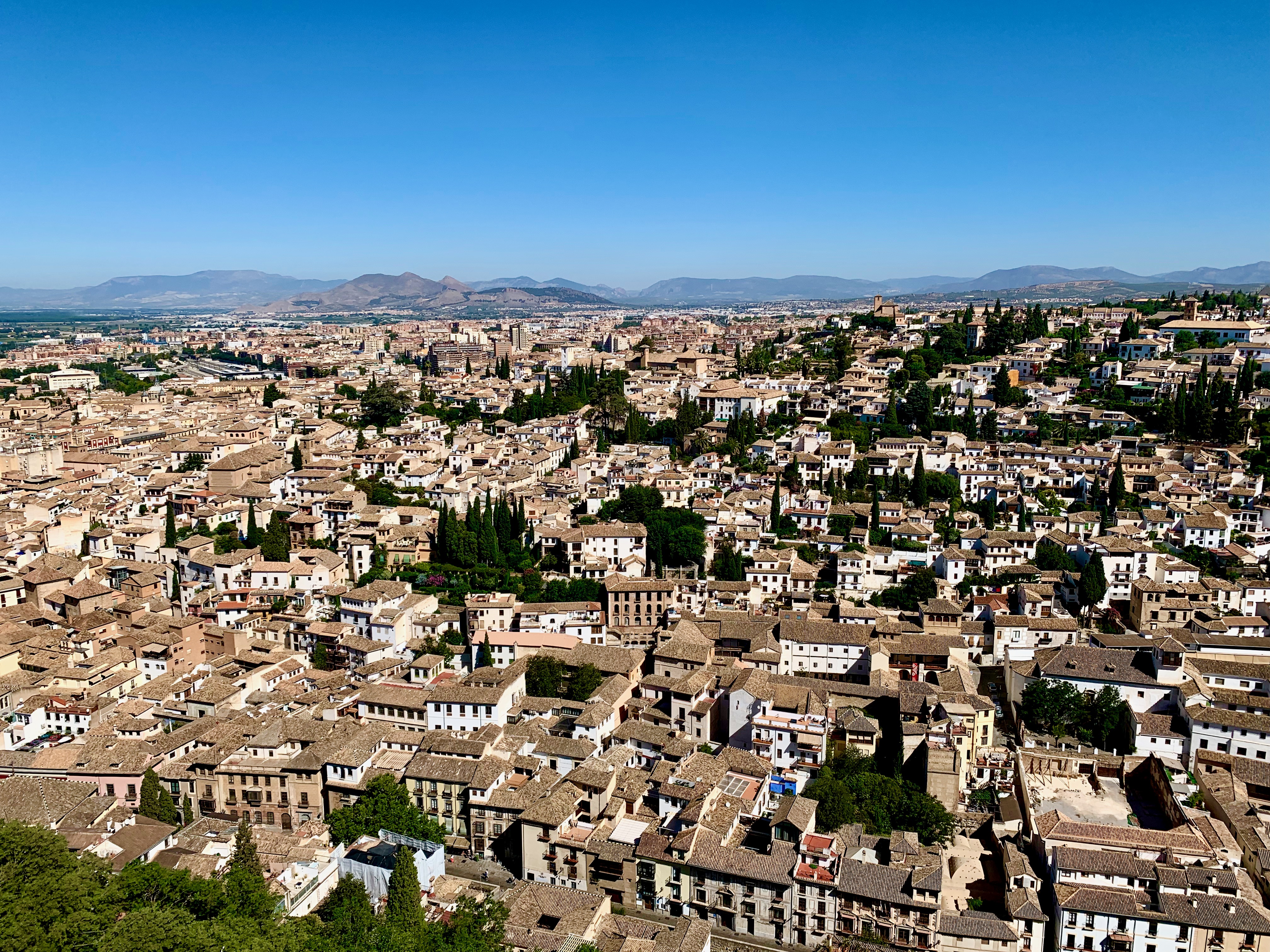 Day 4: leaving Granada and driving to Córdoba. In the morning, we walked up to the Mirador San Nicolás (an observation spot) and saw La Alhambra from a different perspective. The walk took about 20 minutes and was arduous and uphill in the Albaicín neighborhood. I thought it was good for us to walk for a bit before sitting in the car for three hours.