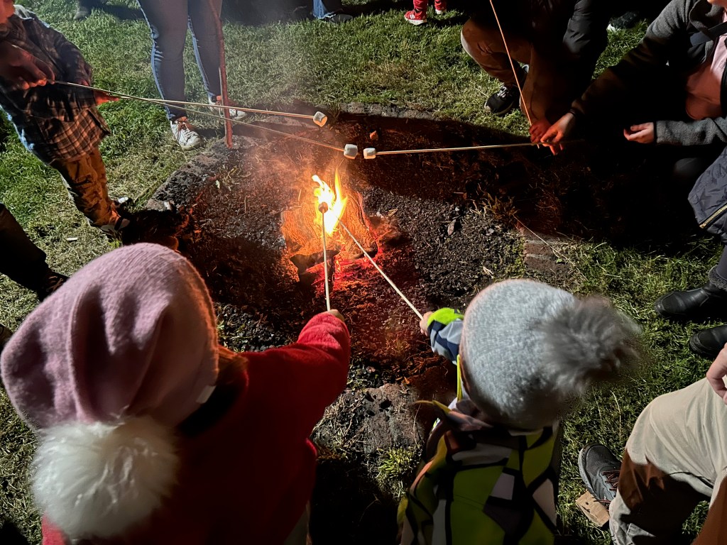 On Friday the kids and I went to “Hayrides and Campfires” event at the Watchung Reservation. We rode around the reservation in a tractor, toasted marshmallows and hot chocolate, and listened to a guitar player. It was after dark- 6:30- and we our tractor was escorted by NJ Police. R was excited to see the lights. When we arrived and parked, the sun was setting and the sky was spectacular!