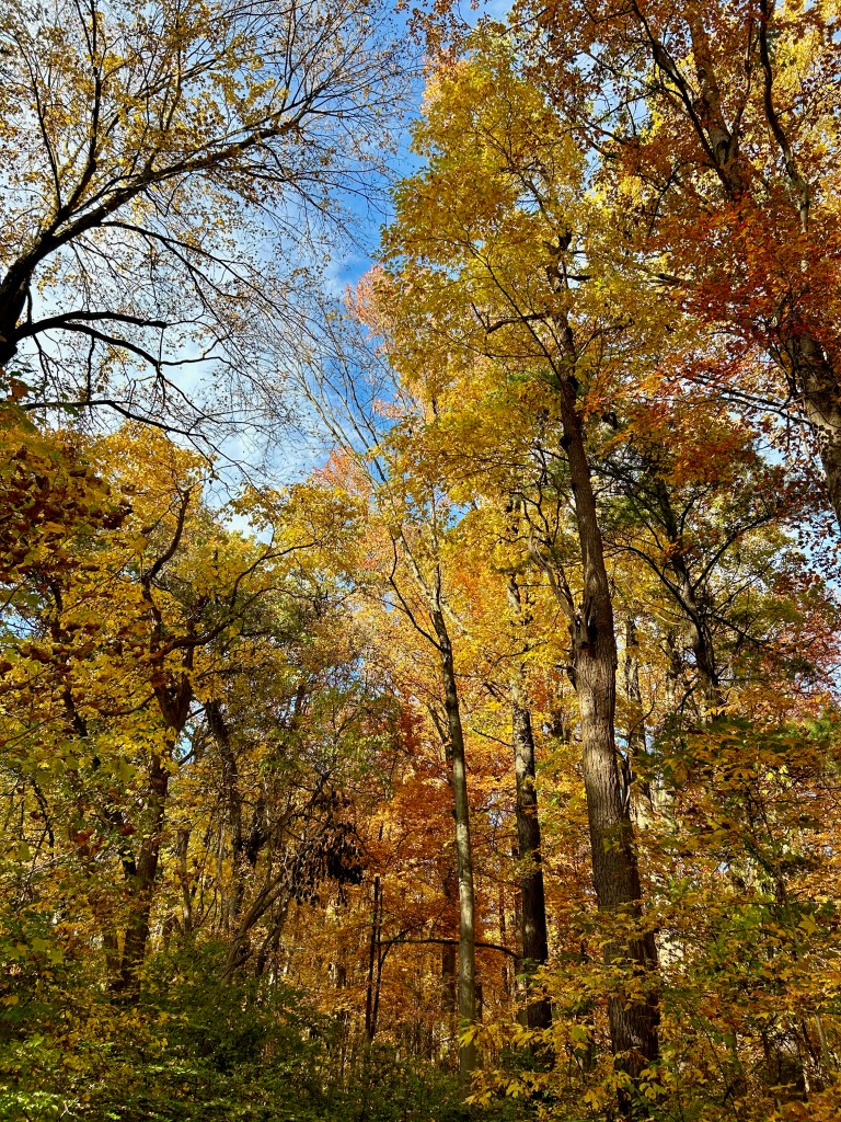 Hiked the reservation yesterday after work, and it was glorious. The contrast between blue sky and yellow leaves… incredible. The whole hike was about 40 minutes and left me feeling tired but content. I’m glad I did it! Need to do it more often, there really should be no excuse – I work 1 minute away from the reservation.