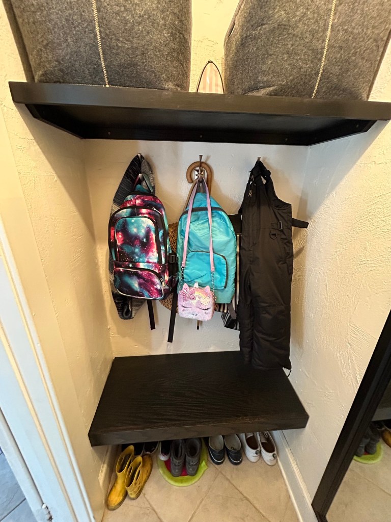The closet wasn’t THAT bad per se. I only got rid of R’s hiking shoes (too small) and his ski pants from last year (same issue).