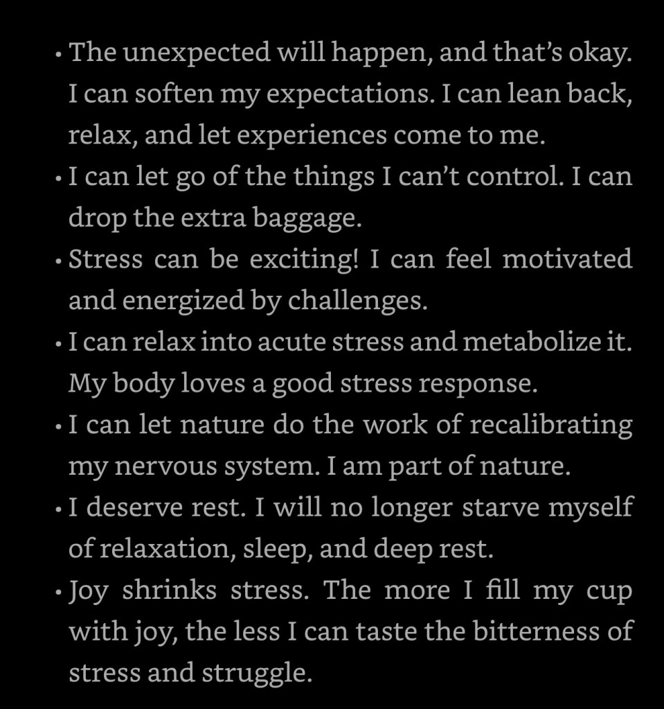 I have been reading! Non-fiction book that I finished was “The Stress Prescription” by Elissa Epel. The book takes places over the course of even days (but, it felt longer) to help people respond to stress in a productive way. The book had a lot of “water” and anecdotes but the essence was a good reminder to not sweat the small stuff. I actually saved some screenshots as reminders for self. See pictures below.