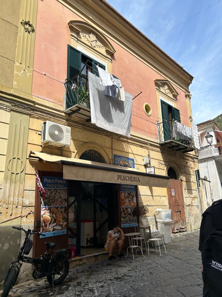 Vietri sul mare looked like a relatively big town, not so much a village. Vietri is famous for its whimsical mosaic patterns all over town. Sections of walls, windows, porches are decorated with mosaics. Really pretty.