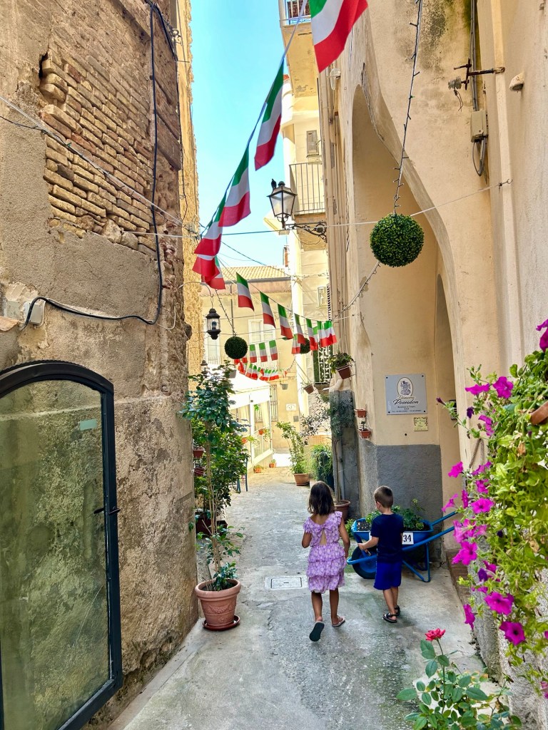 This morning we took a train to Tropea – a town on the sea with amazing views, local architecture and places to eat. I initially wanted to stay in Tropea but it was SO expensive – think 2K for one week. Our accommodation, with a kitchenette, air conditioning, and a fabulous view was $1200 for one week. But, the downside is our accommodation is the fact that it’s kind of in the middle of nowhere and no paper towels.