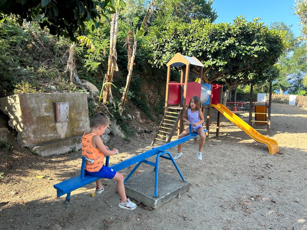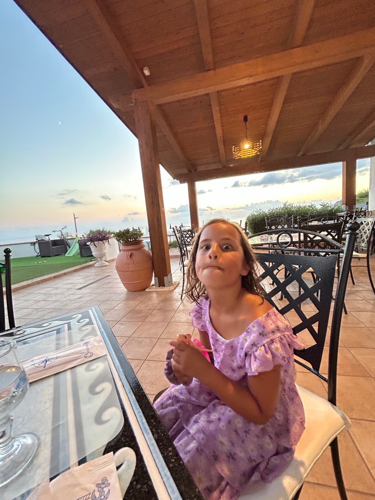 Evening is waiting for dinner and dinner: usually at the restaurant but we’ve had some dinners at the apartment that consisted of bread, cheese, and cold cuts, and tea. Italians eat quite late (similar to Spaniards) so we usually have to wait till 7-7:30 to sit down then the food arrives in no rush. Thankfully, there is a playground #1 right BY the restaurant so the kids can go play while I sit at the table and catch up on life. There are also rest areas- tables to enjoy the views, statues, games. So we can kill some time with no issues.