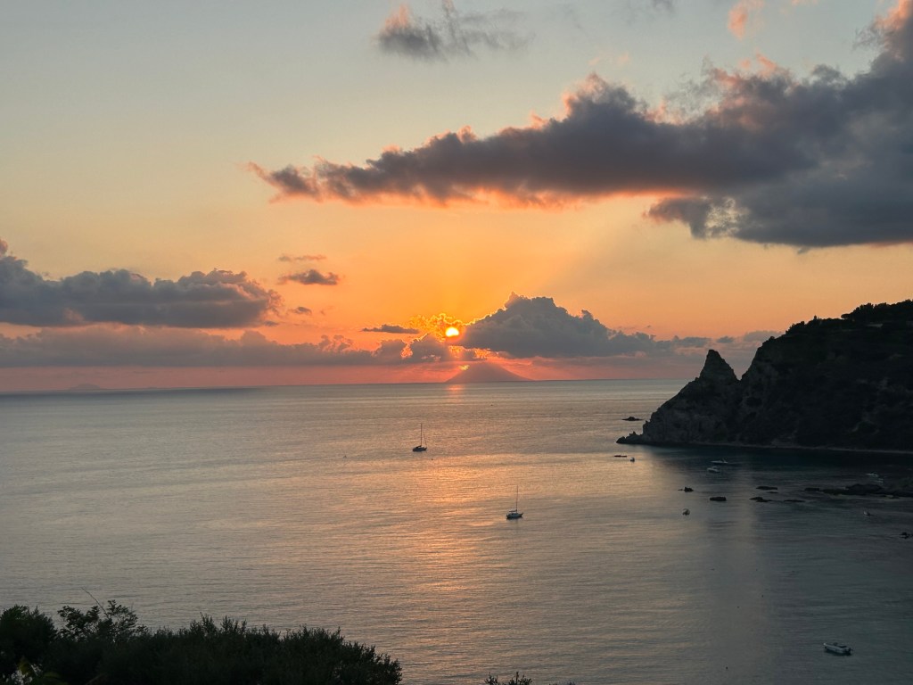Dinner always, always gives spectacular sunsets. However, because the volcano Stromboli is blocking the view, you can never really see a FULL sunset. Instead, you see the sun go behind the volcano.