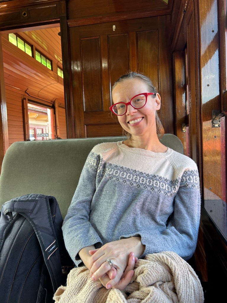 The train ride sounds fun and the picture of you is a gem you look so happy and relaxed.