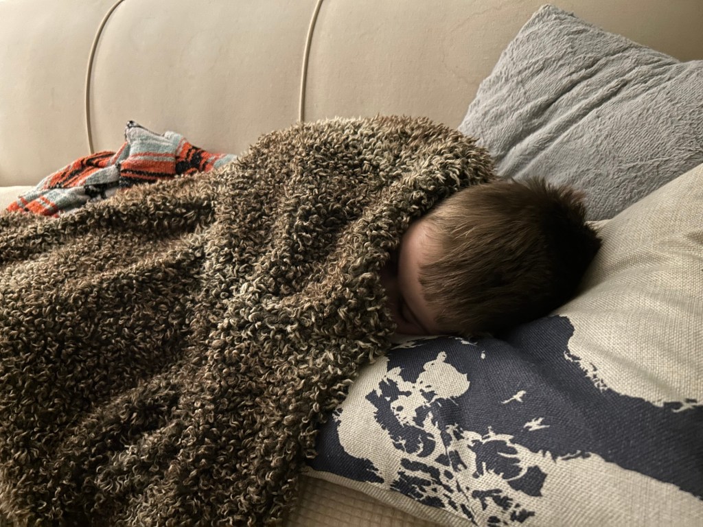 Taco does not realize he can get out of his bed! It can be annoying but mostly it’s a good thing. He will yell during the night for us if he needs to be covered by his blanket again, though…