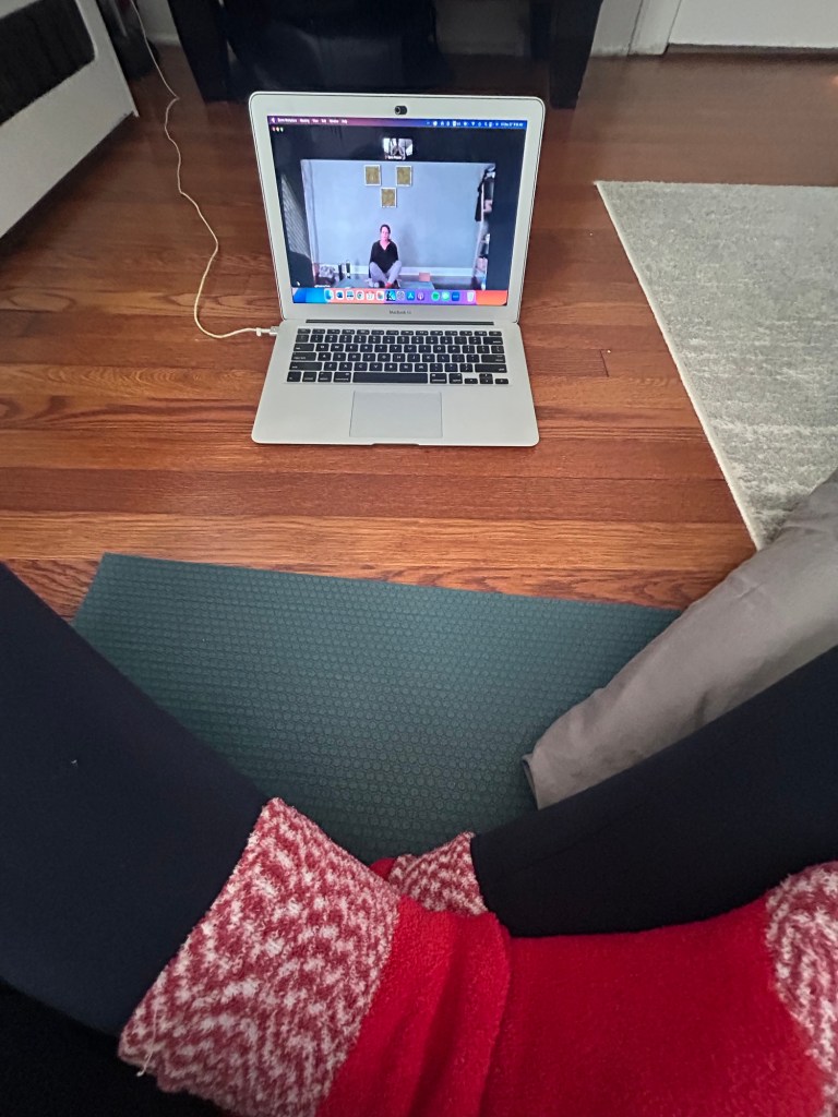 L came down first, sat with me for a bit. R slept in – he was up at 7! That’s late for him. I had a yoga class to attend so I did my yoga class while the kids did some TV and played. They interrupted my savasana but only briefly.