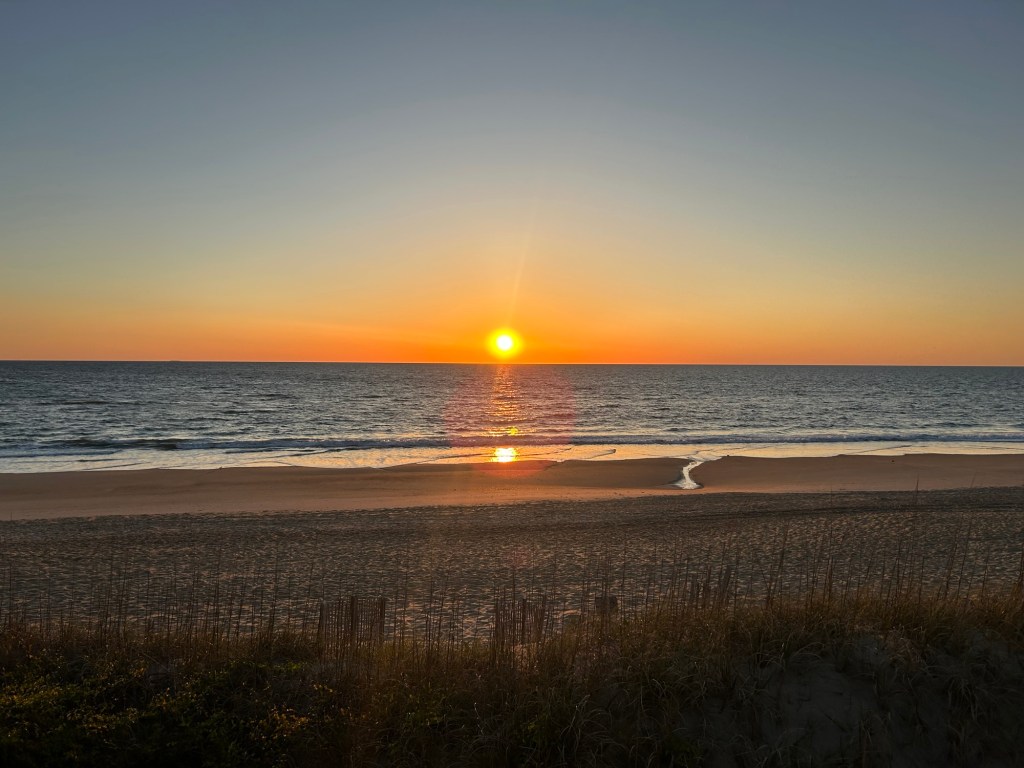 We stayed in OBX (Outer banks) for a total of three nights. T booked us a room with points at a Ramada. The second floor was a “dune view” and they were not kidding- our view of the beach was almost entirely blocked by the dune.