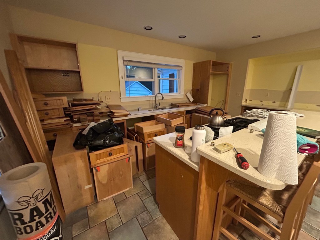 We now eat in the living room. We wash dishes in the upstairs bathroom.