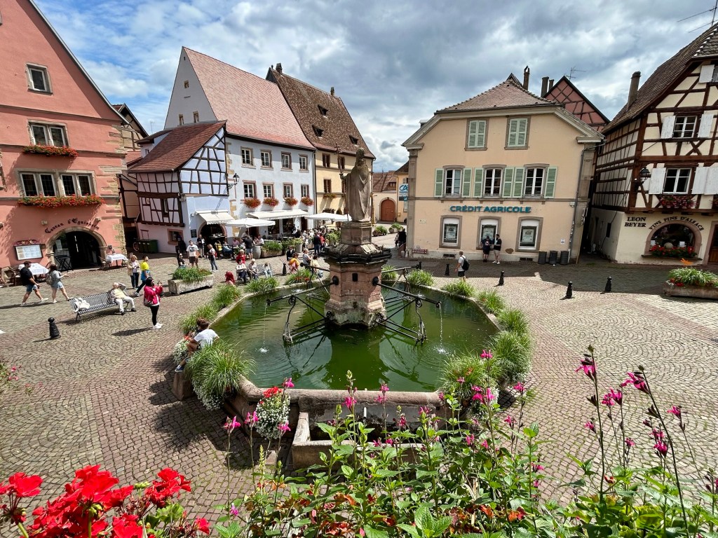 I was in awe of each Alsatian village. Half-timbered houses, covered in flowers, squares covered in flowers, calm and clean fountains, also covered in flowers, sidewalks, also flowers. WHO takes care of this floral abundance?? The residents, I guess?…