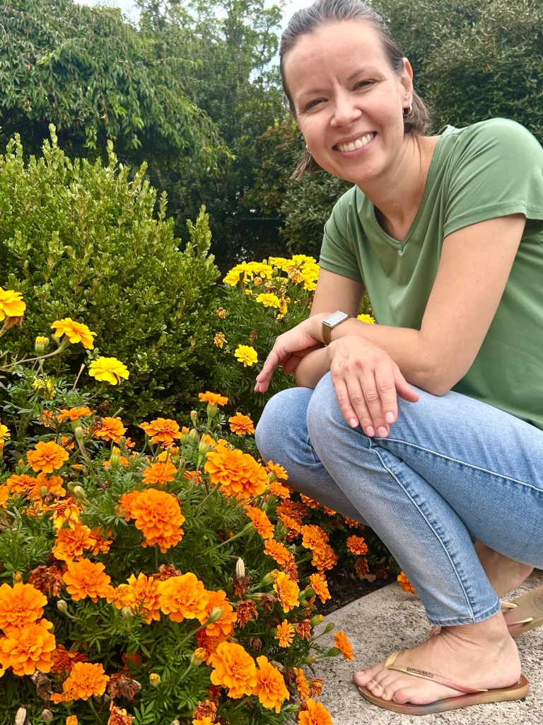 2. Marigolds (my neighbor’s). They look amazing, deer don’t touch them, and they smell good, too: