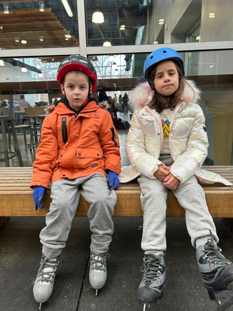 The ice arena also has comfortable seats with tables, arm chairs, and a cafe. So the kids can spend some time resting, have some water, have a snack. Skating can be tiring since your whole body is getting a workout.