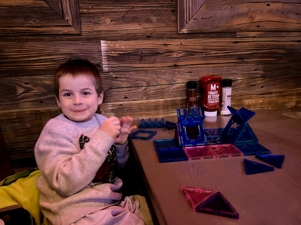 We then worked on our Christmas puzzle. Rather I worked on it and my son just mooched around. But he did find a few pieces that fit.