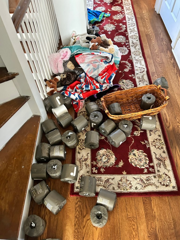 Plushies, towels and toilet paper -before