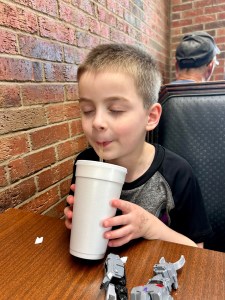 The next day, Friday, we had breakfast and were on the road again. This time to South Carolina. The more south we went, the lovelier the accents and nature became. We stopped quite a few times to eat and use the restroom. I only try to stop at the highway rest stops if I absolutely have to. Instead, I look for local diners. For example, we first stopped at Logan’s Diner in Emporia, VA – a nice, local spot featuring folks who live in town, and it was only a 5 minute detour. For lunch, we stopped at some hole in the wall in Fayettsville, NC, presumably famous for its burgers and sweet tea. Here is R, tasting sweet tea for the first time: