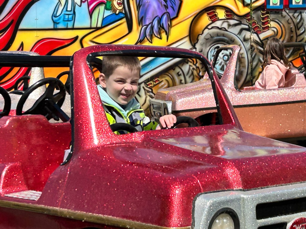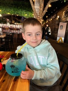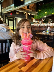 A moving scorpio toy, a funny looking tumbler, a sweat shirt for each of us, some t-shirts, some fudge, earrings, and endless portions of ice cream. We have spent money on rides, and photo booths, and arcade games, and more rides. Afternoon coffee. Some blue-colored drinks with zero nutritional value, served in a giant bowl accompanied by a rubber ducky (you got to keep both the container and the ducky).